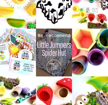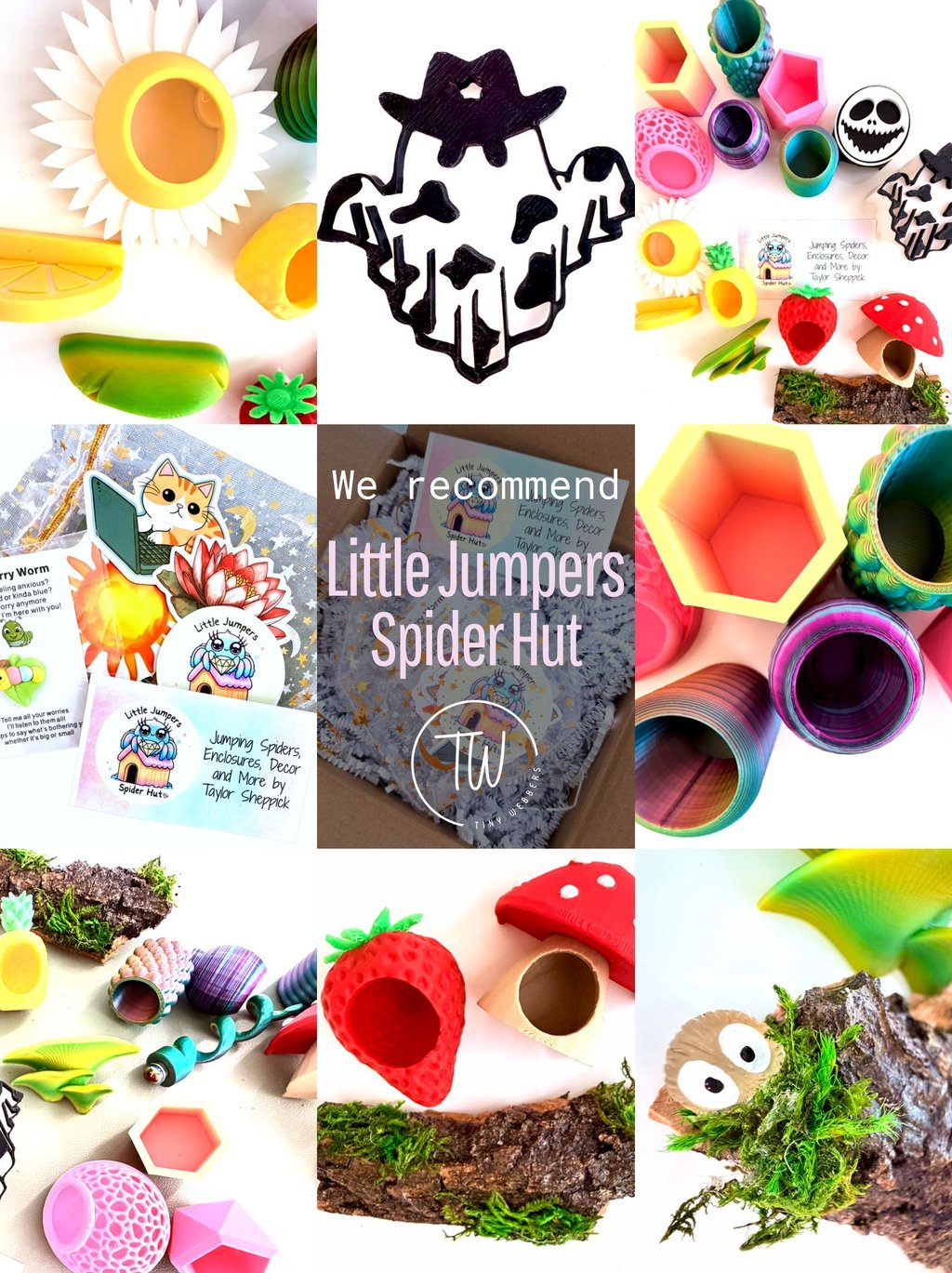 We’re absolutely obsessed with these adorable hides and ledges from Little Jumpers Spider Hut. Every piece is creative, vibrant, and made with so much love — perfect for turning any spood enclosure into a cozy little wonderland. From strawberries 🍓 to mushrooms 🍄 to colorful ledges, these pieces are not just cute… they’re spood-approved!